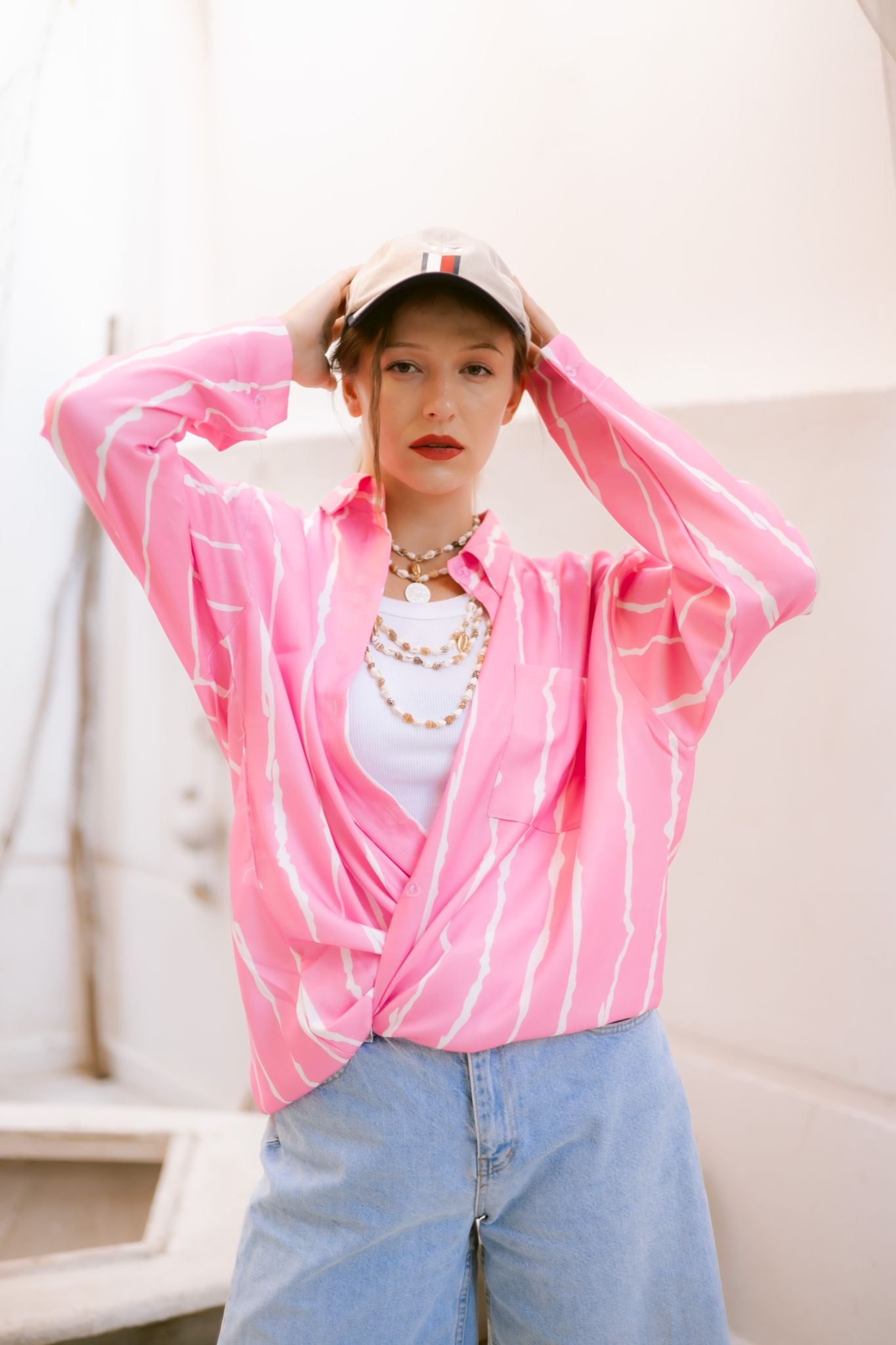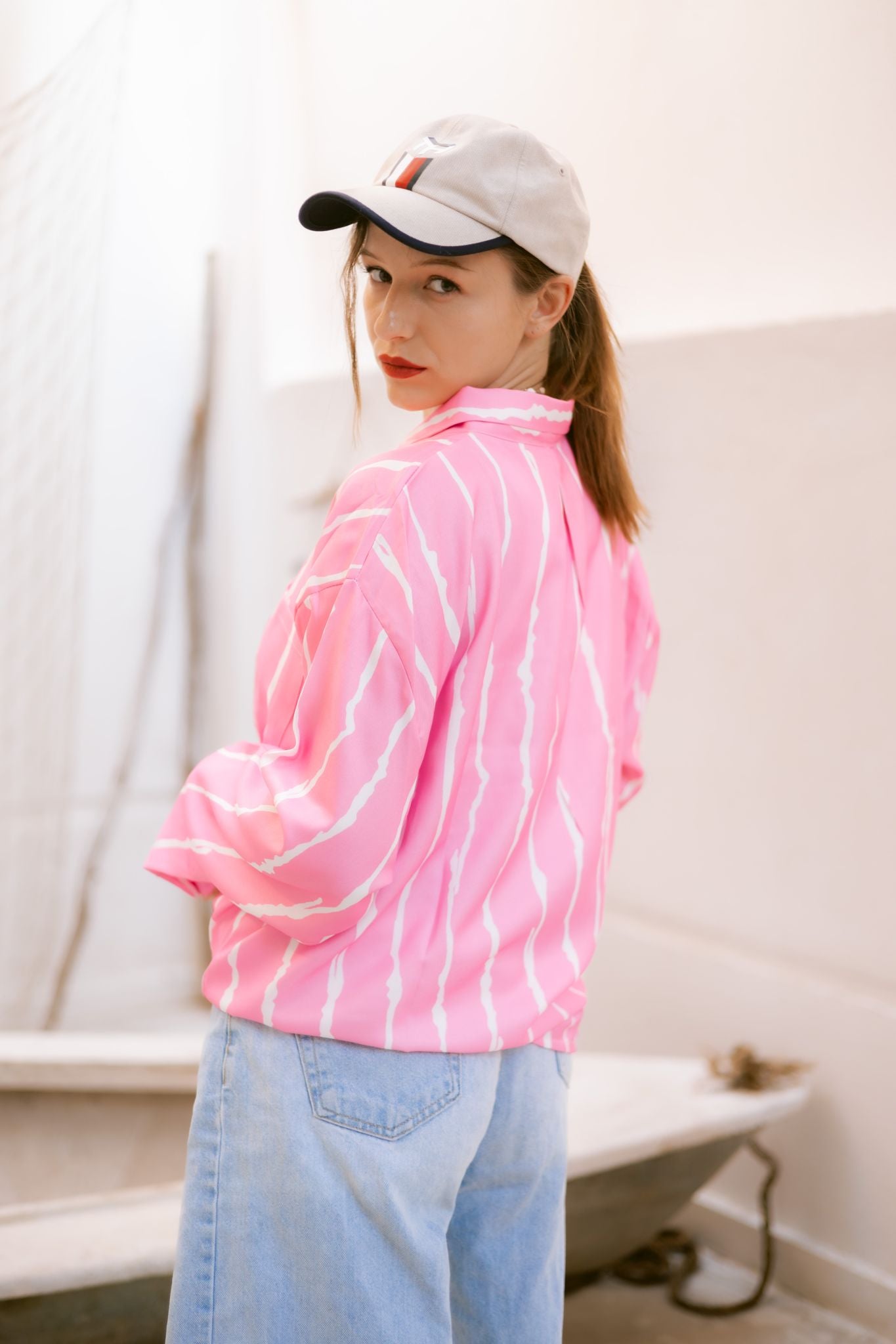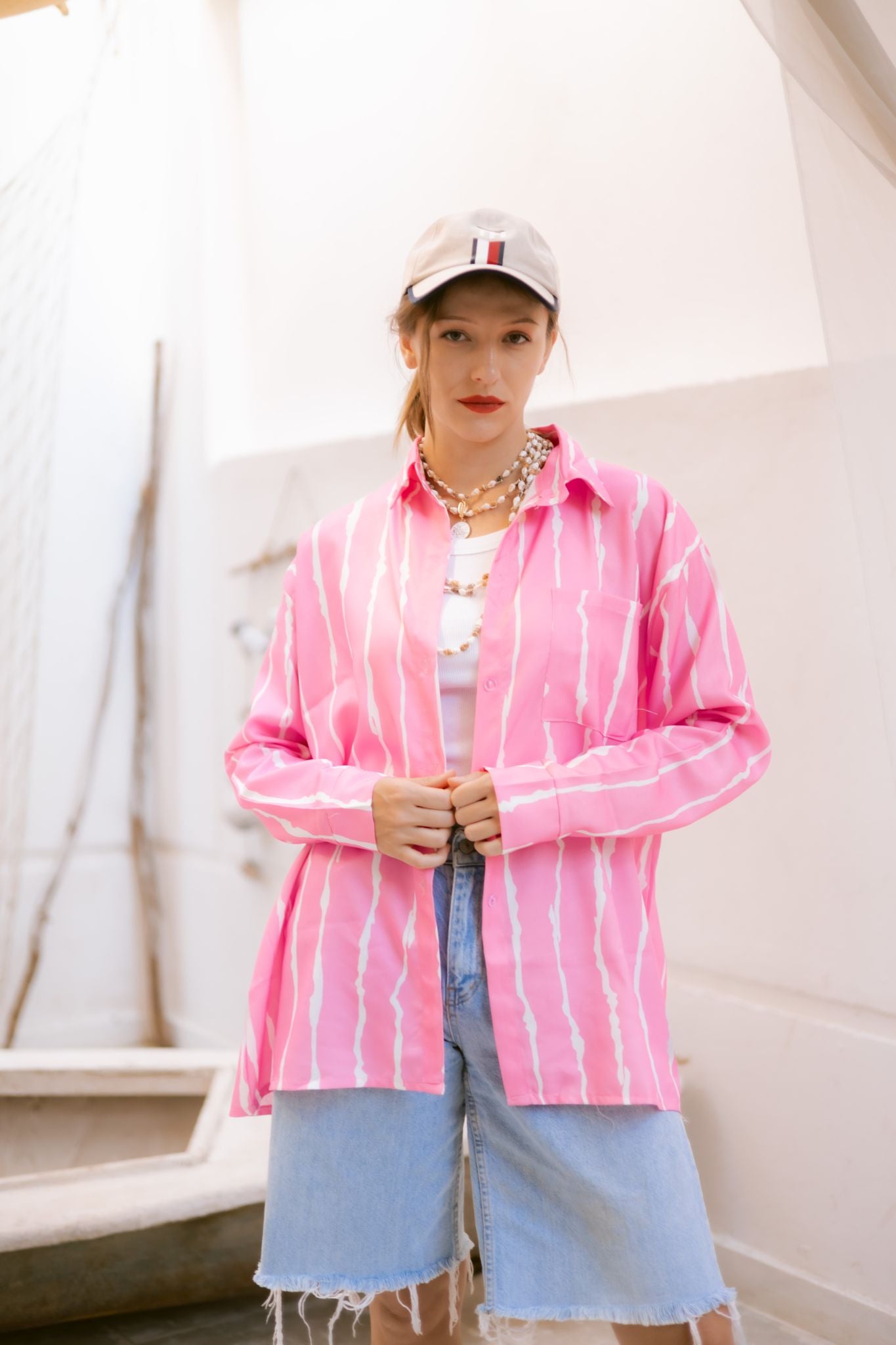 pink stripped shirt